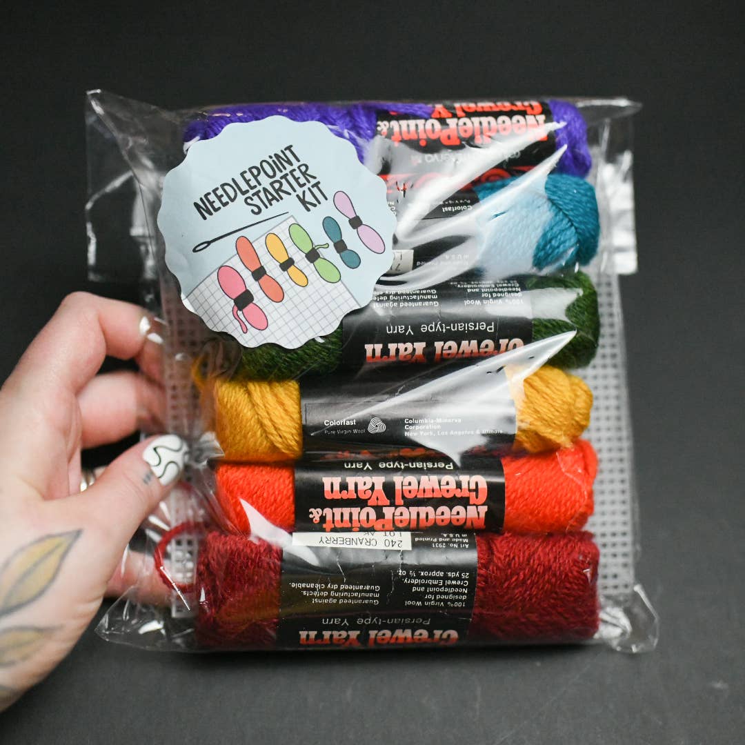 Feeling nostalgic? Here's everything you need to start your own needlepoint project. This kit is made with secondhand materials so please allow for variation between what you see in the photo but each kit contains: