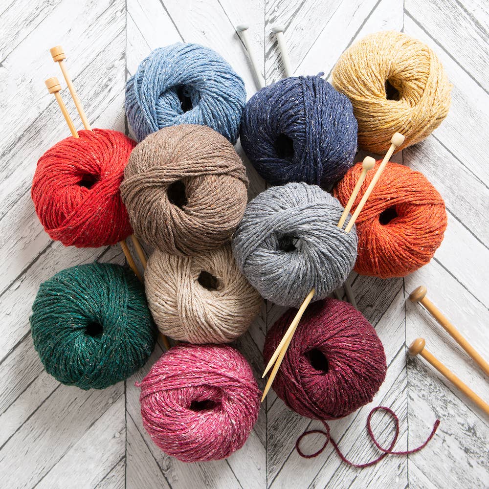 This is Wool Couture’s take on a classic Aran Yarn. The blend is super soft and perfect for accessories, clothing, and housewares. Yarn Weight: 50 grams per ball Length: 100m per 50g approx Needle Size: 4-5mm Crochet hook: 4-5.5mm Weight: Aran weight Tension swatch (on 5mm knitting needles): 18 stitches + 24 rows per 10 cm / 4″ The blend of yarn includes: 28% cotton, 28% polyester, 20% acrylic, 10% silk, 9% linen and 5% other fibres. Care for your Utterly Aran Yarn by machine washing at 30 degrees.